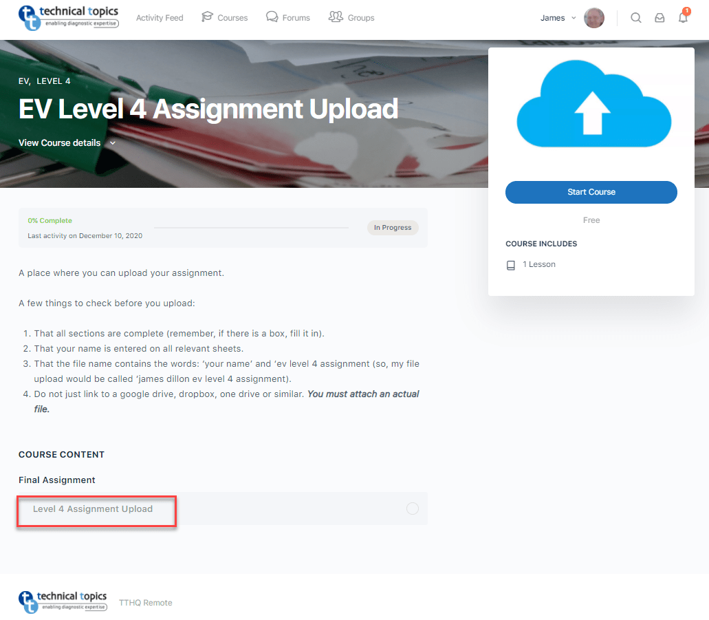 - That the file name contains the words: ‘your name’ and ‘ev level 4 assignment (so, my file upload would be called ‘james dillon ev level 4 assignment).